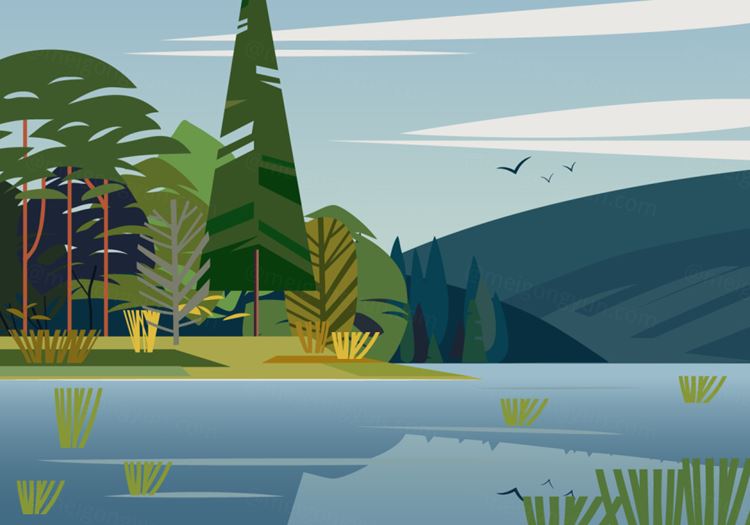图穷联素材库 » 沼泽湿地矢量风景插图Swamp Landscape