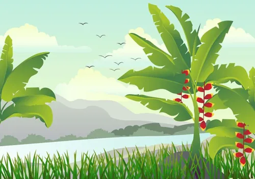 香蕉树芭蕉树矢量景观图Scene With Banana Tree Illustration
