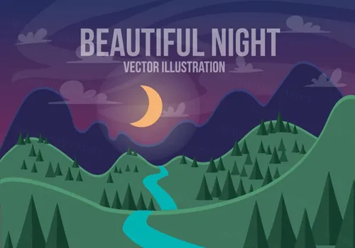 图穷联素材库 » 美丽夜景山水风景矢量插图Beautiful Night Vector Landscape