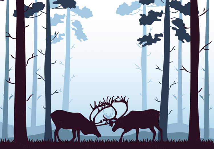 森林驯鹿剪影矢量插图Caribou Silhouette