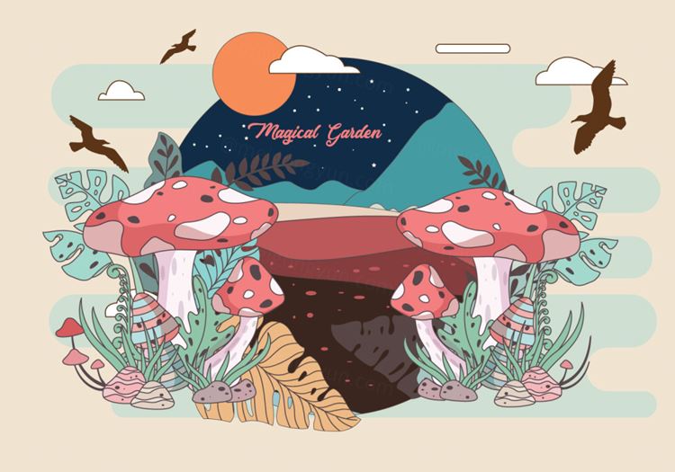 图穷联素材库 » 神奇花园涂鸦矢量插图插画元素Magical Garden Vector Illustration