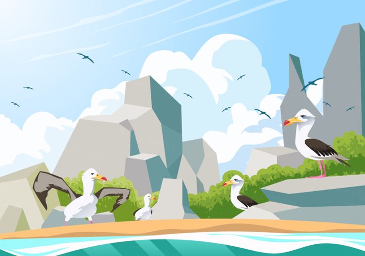 图穷联素材库 » 岩礁上的信天翁鸟矢量插图Albatross Birds On Rocky Beach Vector