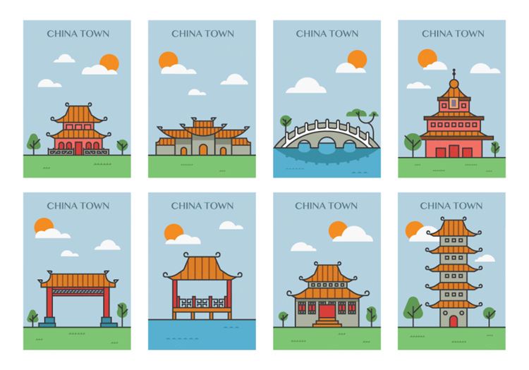 图穷联素材库 » 中国特色城镇建筑矢量插图China Town Posters