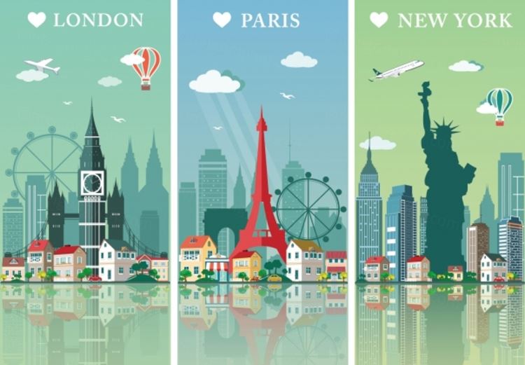 图穷联素材库 » 城市天际线伦敦巴黎纽约剪影地标风景矢量图
