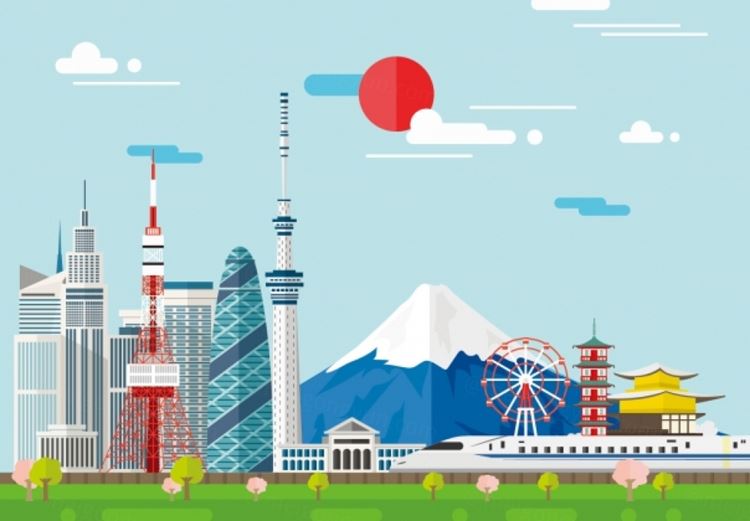图穷联素材库 » 日本东京城市富士山扁平化矢量插图
