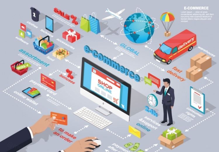 图穷联素材库 » 全球互联网电子商务采购概念矢量插图