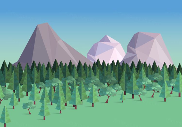 图穷联素材库 » 低多边形矢量山川森林景观Low Poly Forest With Mountain Background Vector Illus...