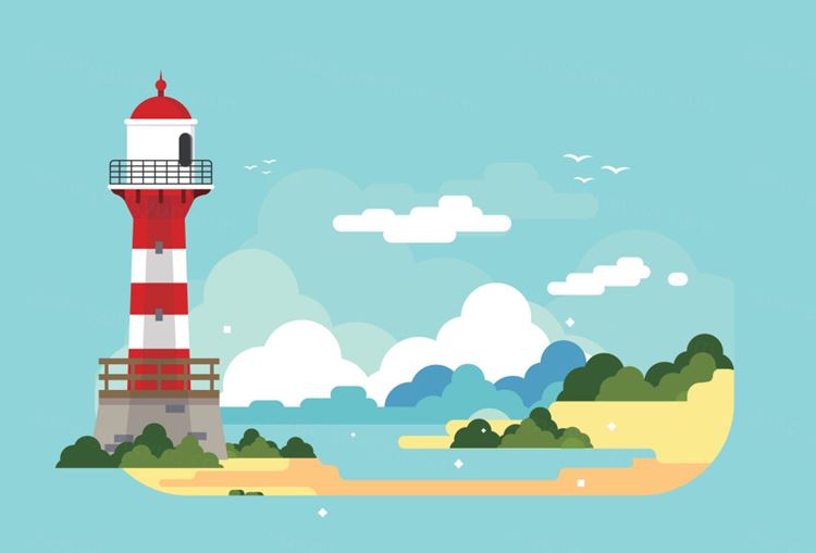 图穷联素材库 » 海湾灯塔矢量插图Cove Vector