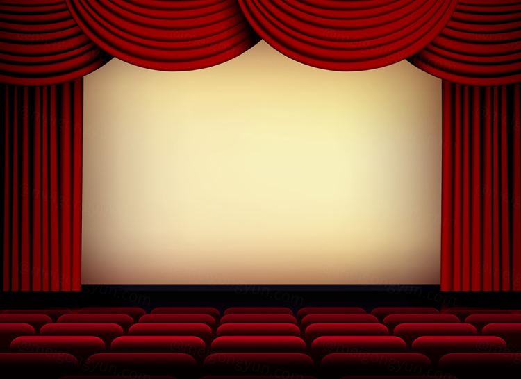 图穷联素材库 » 剧院电影院舞台荧幕矢量背景Theater Or Cinema Auditorium Screen With Red Curtai...