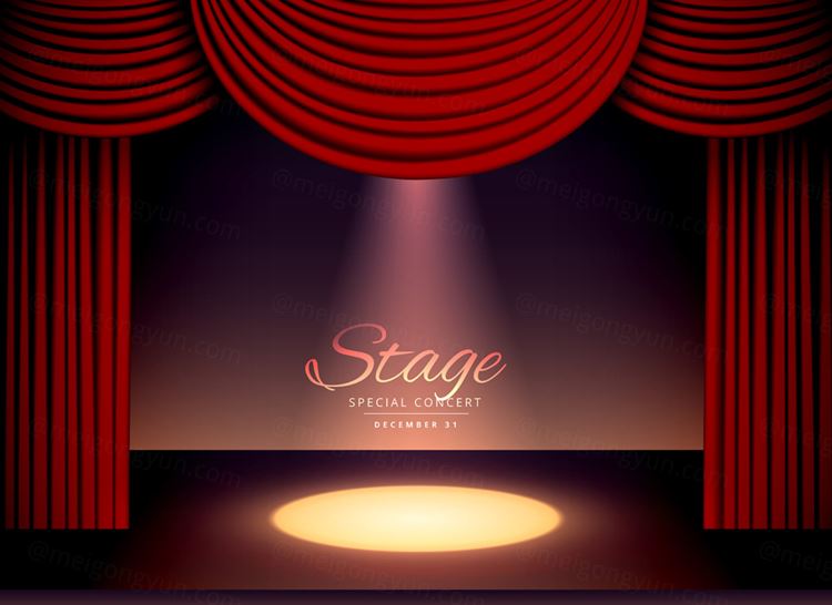 图穷联素材库 » 带灯光红色帷幕的剧院矢量背景Theater Scence With Red Curtains And Falling Spot...