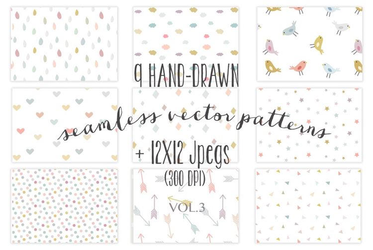 小清新插画无缝背景9 colorful seamless patterns