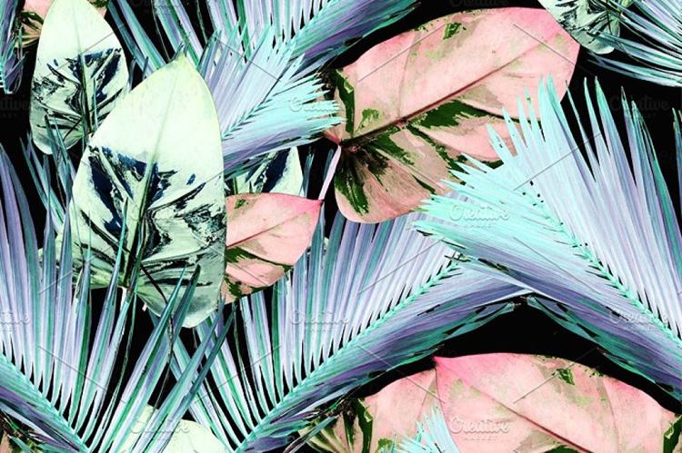 图穷联素材库 » 抽象手绘水彩热带植物Seamless fashion leaves pattern