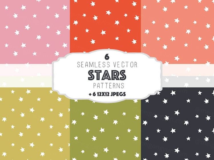 图穷联素材库 » 星星图案无缝背景Stars patterns set 1
