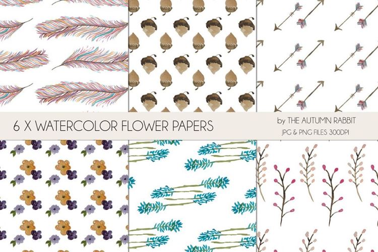 图穷联素材库 » 创意小清新图案无缝背景Watercolor Paper Set - Rustic