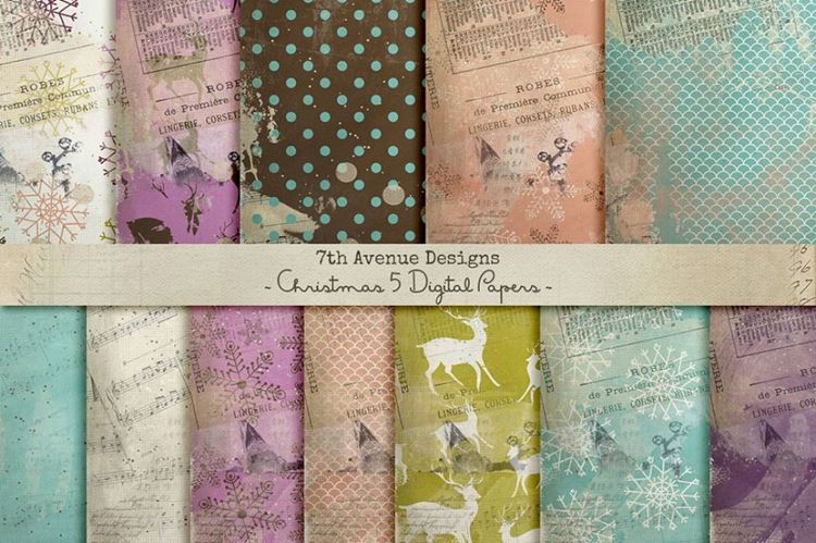 图穷联素材库 » 圣诞节主题图案无缝背景Christmas Papers 5