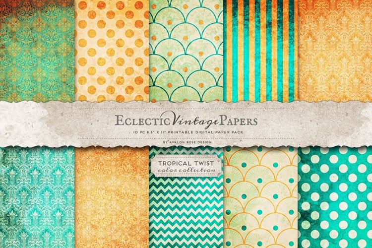 图穷联素材库 » 复古纹理图案无缝背景Printable Papers - Tropical Twist