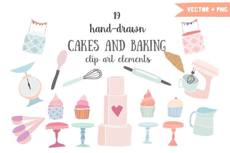 手绘彩色烘焙工具设计素材Cakes and baking clip art