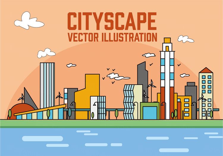 图穷联素材库 » 简线海滨城市矢量图Peach Linear City Vector Illustration