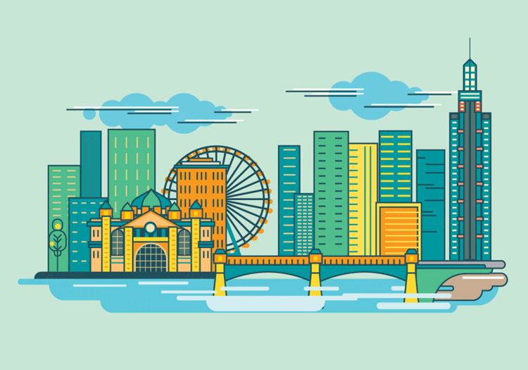 图穷联素材库 » 澳大利亚墨尔本城市地平线矢量插图Melburne City Skyline Australia Vector