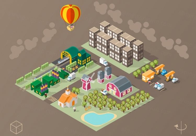 图穷联素材库 » 2.5D等距等轴立体城市建筑火车站农场矢量组合元素