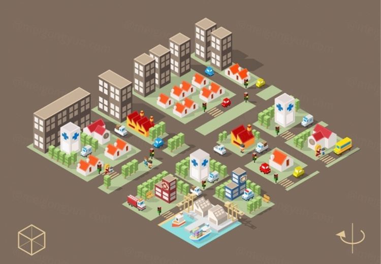 图穷联素材库 » 2.5D等距等轴立体城市建筑医院社区矢量组合元素