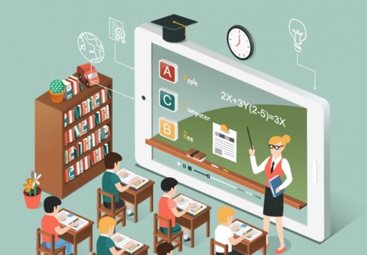 图穷联素材库 » 2.5D等距等轴学校课堂上课矢量插图