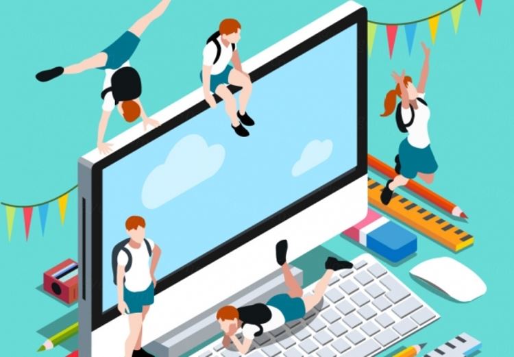 图穷联素材库 » 等距等轴办公场景苹果电脑矢量图