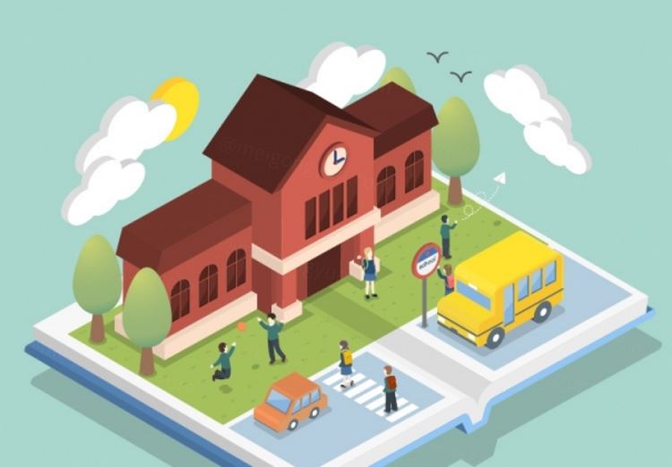 图穷联素材库 » 等距等轴书本学校立体矢量图
