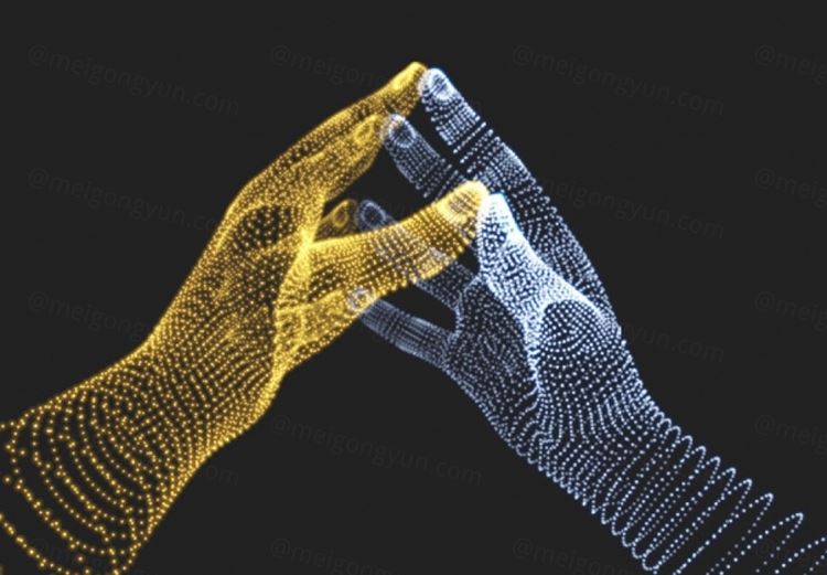 图穷联素材库 » 蓝黄色科技感数码粒子抽象手动作矢量元素