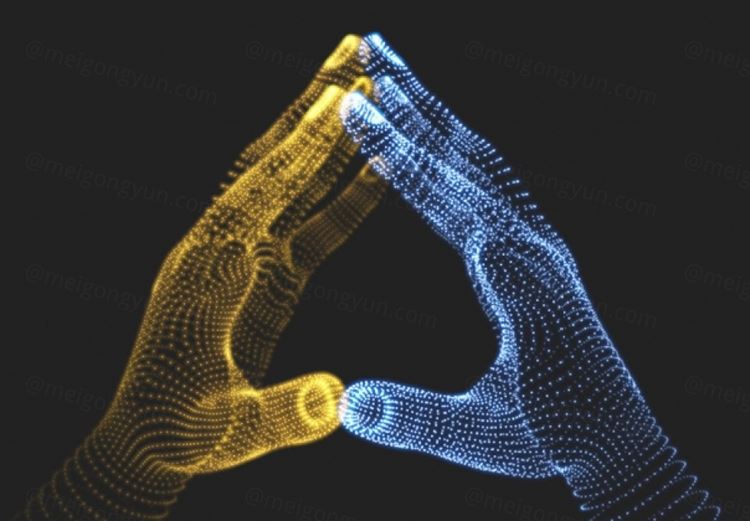 图穷联素材库 » 科技感数码粒子抽象双手合拢动作矢量元素
