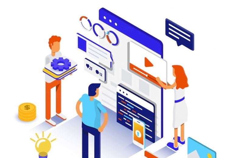 图穷联素材库 » 网站优化云计算区块链平台数据分析网上购物Flat color Modern Isometric Illustrat...