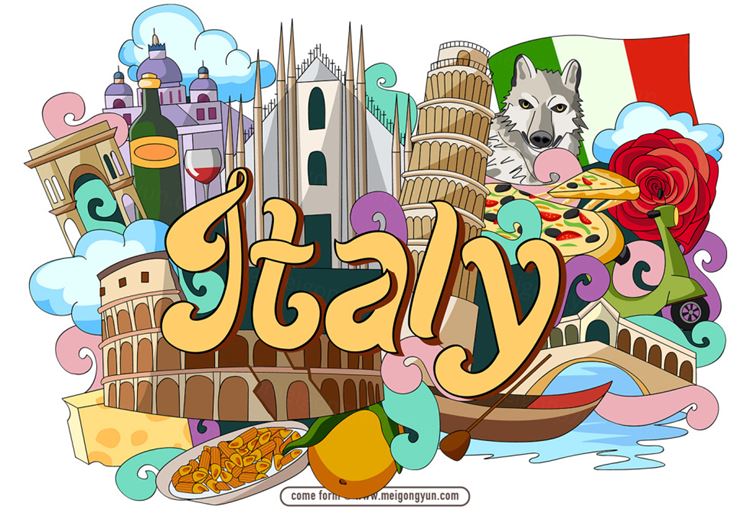 图穷联素材库 » 手绘涂鸦世界国家城市意大利特色建筑矢量元素italy