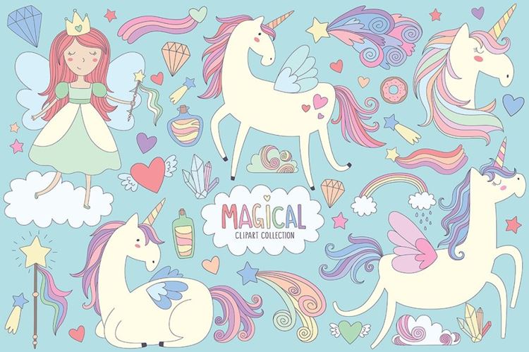 图穷联素材库 » Unicorns-amp; Magical Design Elements