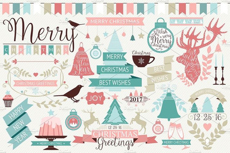 图穷联素材库 » Vintage Christmas Decor Elements Set