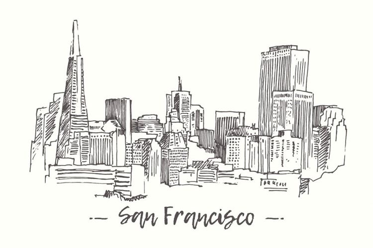 图穷联素材库 » 手绘楼房建筑矢量插图Views of San Francisco