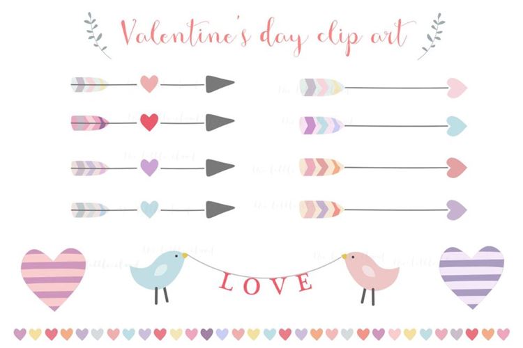 图穷联素材库 » 手绘水彩箭头设计素材Arrows and hearts love clip art