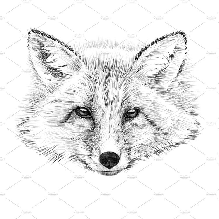 图穷联素材库 » 素描狐狸矢量插图Portrait of fox drawn by hand