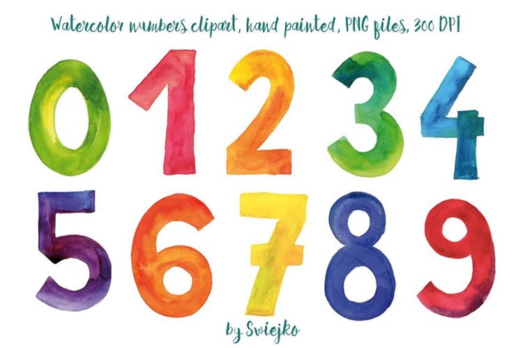 图穷联素材库 » 手绘水彩字母设计素材Watercolor Numbers