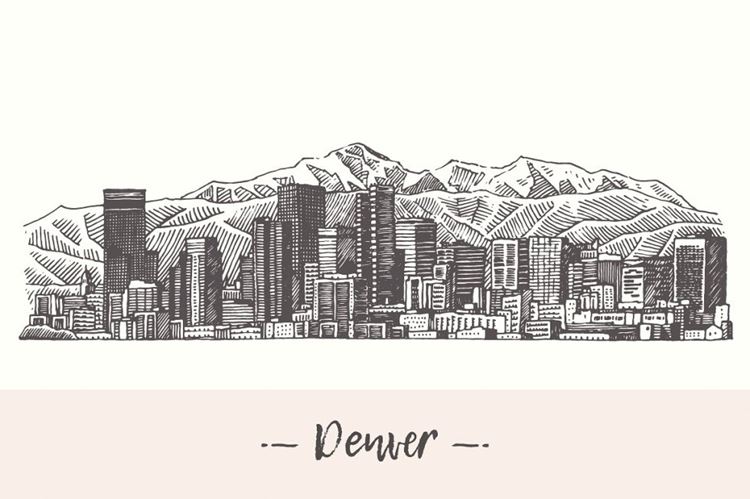 图穷联素材库 » 手绘城市矢量插图Denver skyline , USA