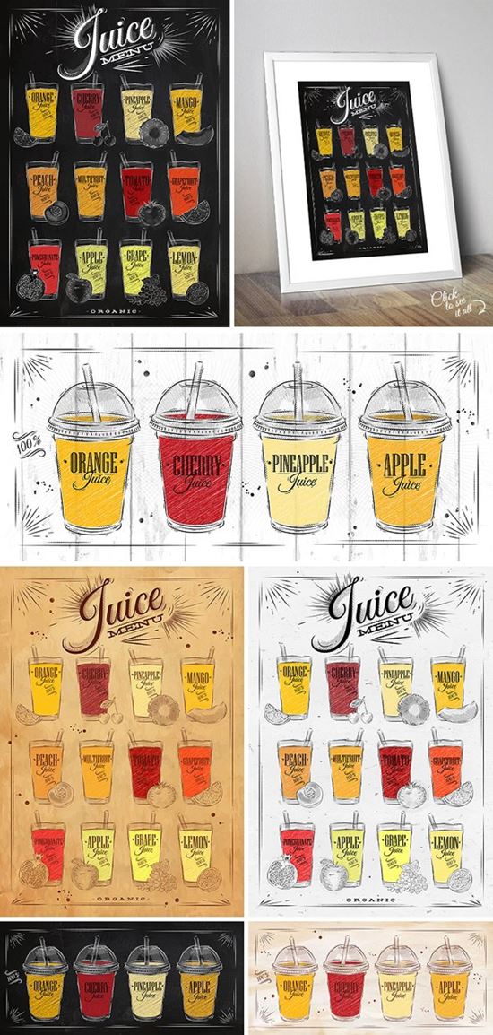 图穷联素材库 » 手绘果汁插图素材Set Juice Posters