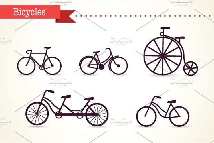 图穷联素材库 » 手绘自行车矢量插图Bicycles vector set