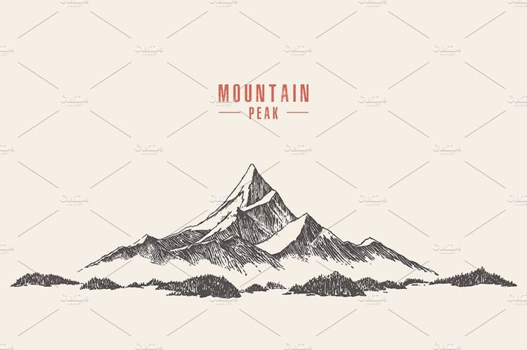 图穷联素材库 » 手绘山峰矢量插图Mountain peak with the pine forest