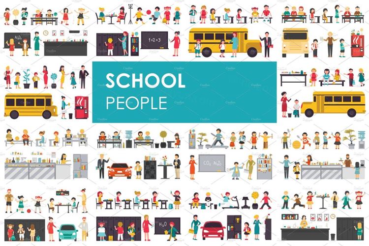 图穷联素材库 » 矢量学校场景插图素材School - flat people set