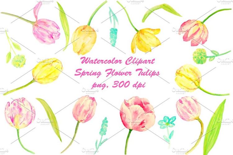 图穷联素材库 » 手绘水彩花卉植物设计素材Watercolor Tulips