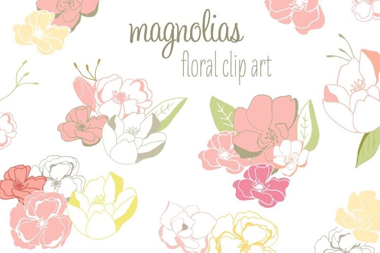 高质量手绘花卉插图素材Magnolia Clip Art