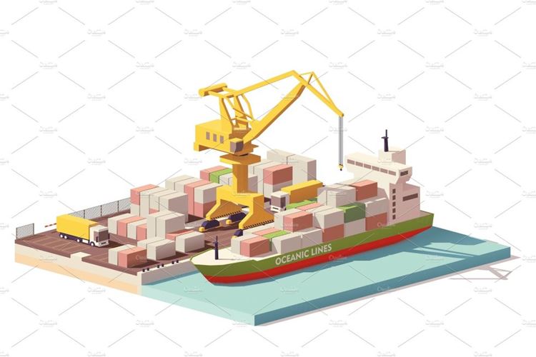 图穷联素材库 » 矢量等距码头集装箱图标素材Vector low poly port container terminal and ship