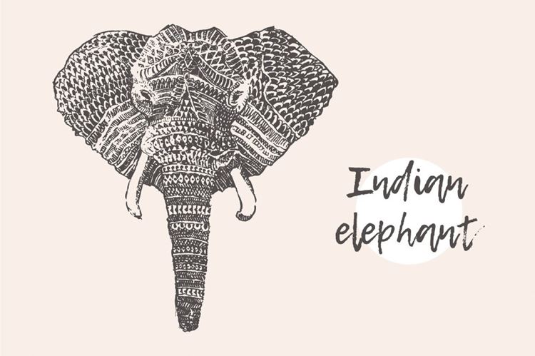 图穷联素材库 » 手绘大象矢量插图Indian elephant