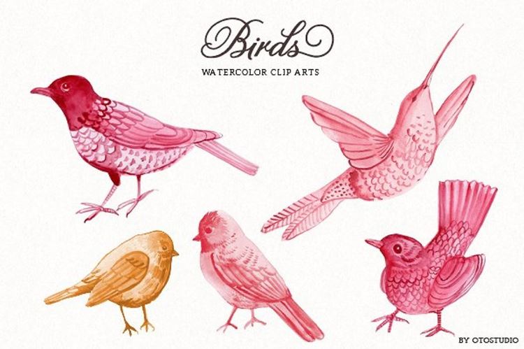 图穷联素材库 » 手绘水彩鸟儿设计素材Watercolor Bird Illustrations