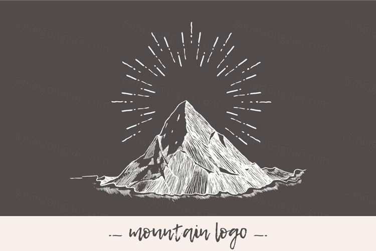 图穷联素材库 » 手绘山峰矢量插图Mountain logo with sparkles‘
