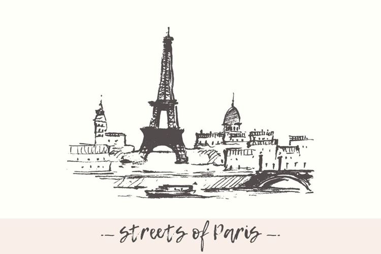 图穷联素材库 » 手绘埃菲尔铁塔矢量插图Streets in Paris , Eiffel tower